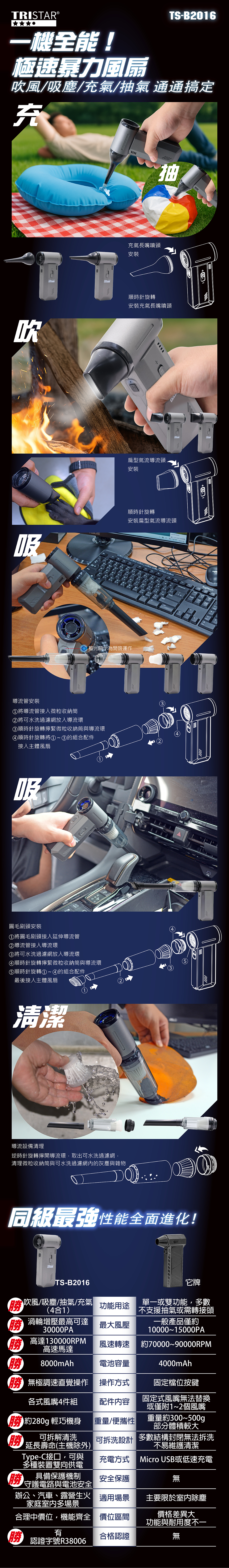 【TRISTAR】130000RPM多功能極速強風暴力風扇(TS-B2016)