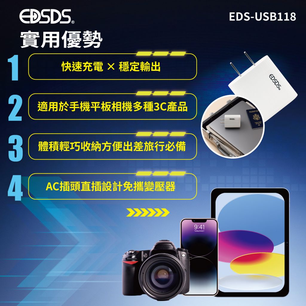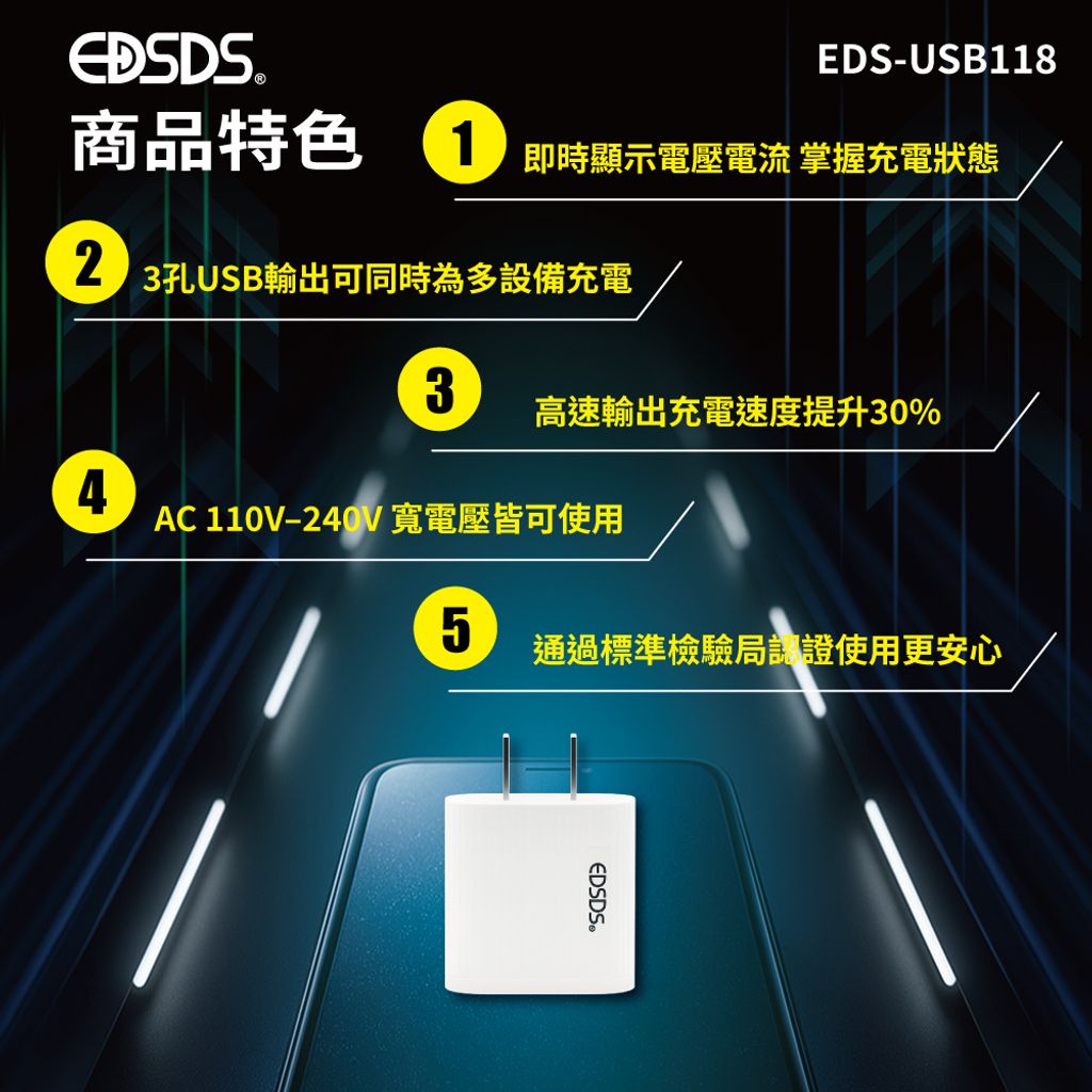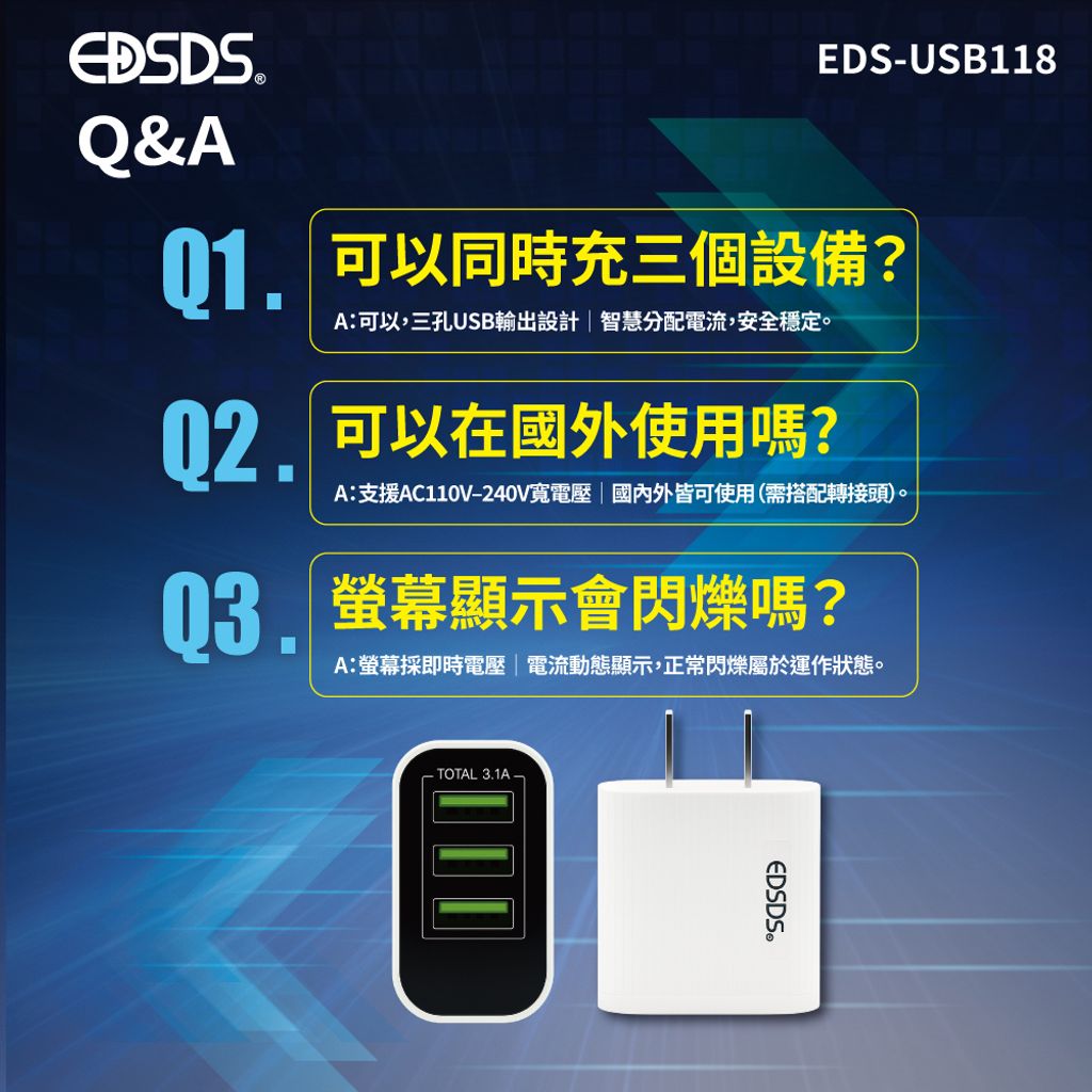 EDSDS愛迪生3.1A快速充電器(智慧型電流電量顯示)(EDS-USB118)