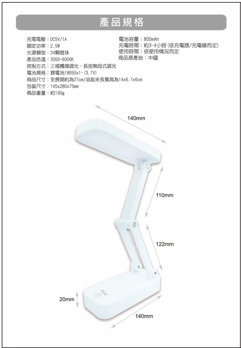 【TRISTAR】三星輕巧型LED摺疊檯燈 (TS-L021)