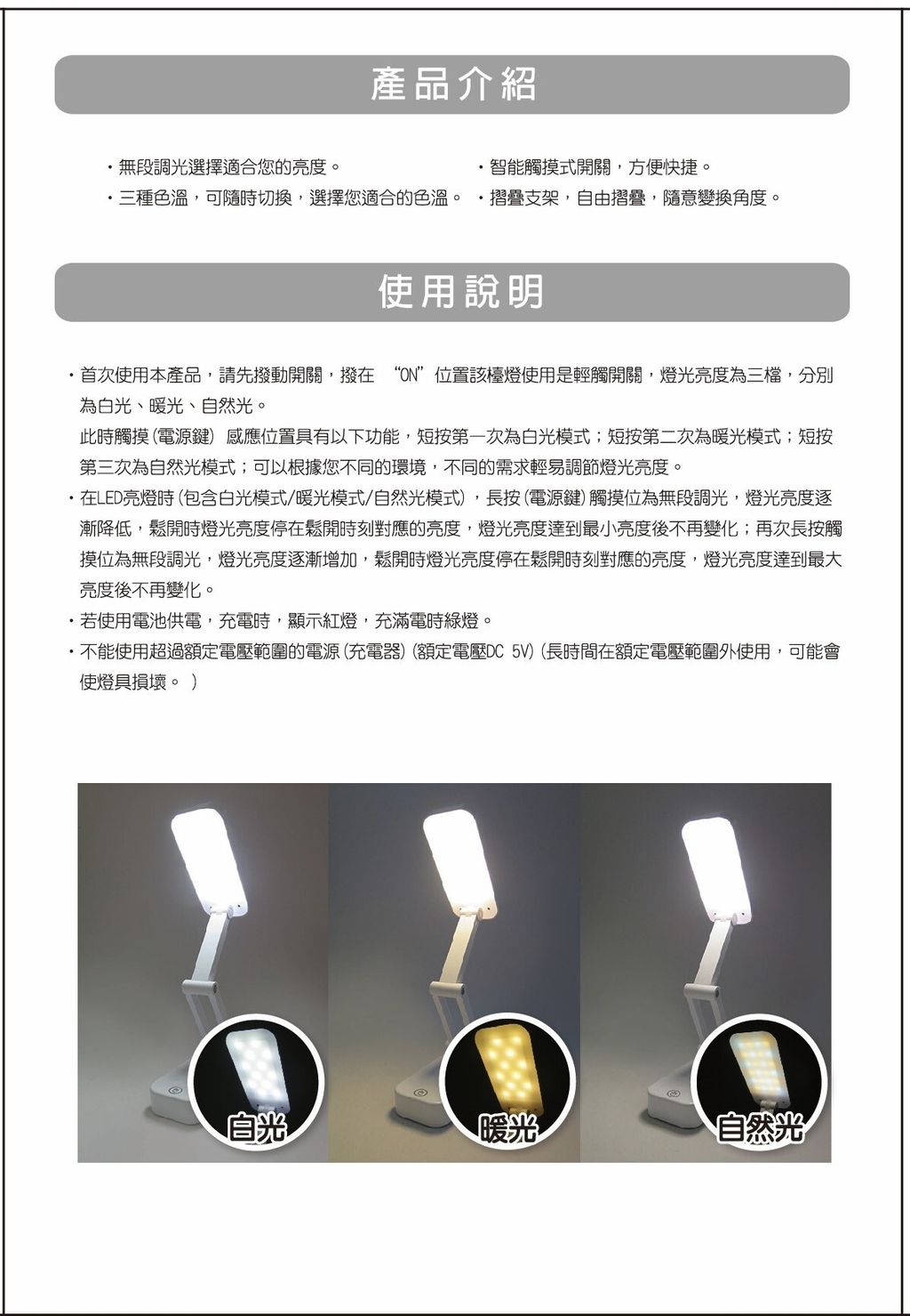 ○無段調光LED摺疊檯燈,隨需調整亮度。