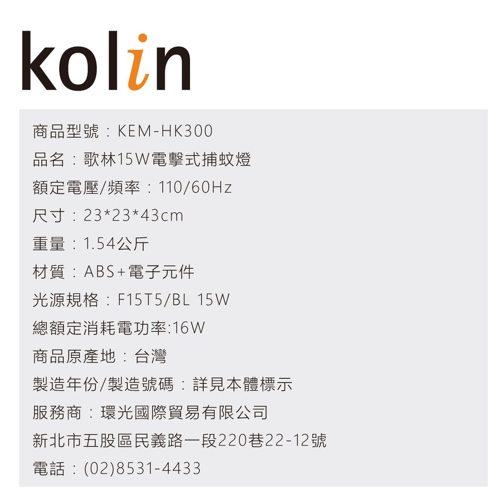 【Kolin】歌林電擊式15W捕蚊燈(KEM-HK300)