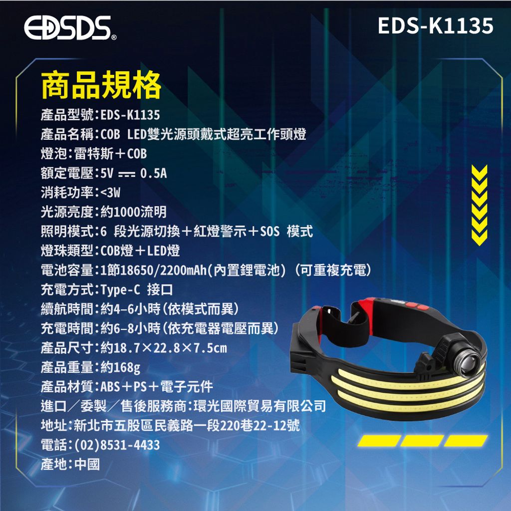 【EDSDS】雙光源COB頭戴式工作頭燈(EDS-K1135)